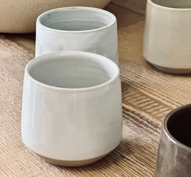 En 2022, je décide de laisser ma passion prendre le dessus et quitte Montpellier pour revenir sur Arles, ma ville natale, afin de bénéficier du savoir de ma mère. Une véritable transmission se met en place. Elle m’apprend les gestes et différentes techniques telles que l’estampage, le modelage et le tournage. Je travaille le grès, c’est une terre qui cuit à haute température. Ayant une préférence pour la terre brute, j’ai choisi de diversifier la couleur de celle-ci et de privilégier un émaillage blanc ou transparent. J’ai, petit à petit, mis au point ma propre collection que je fabrique en série, et je réalise également des pièces uniques sorties sur commande.