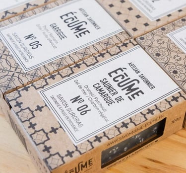 Sophie installe son laboratoire à Arles et propose une gamme de produits cosmétiques, naturels et bio. Les savons Écume saponifiés à froid, conservent tous les bienfaits des huiles végétales issues de l'agriculture biologique, pour donner un savon surgras, ce qui apporte une grande douceur, et des propriétés nourrissantes et protectrices à la peau.